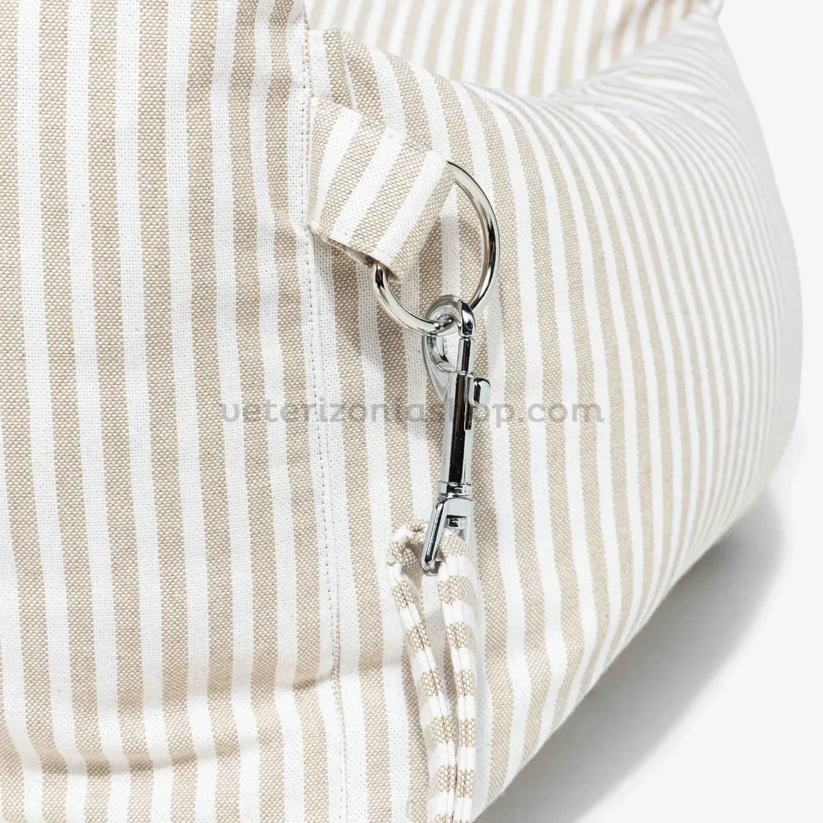 Este asiento de coche para perros desenfundable en rayas beige está diseñado para ofrecer a tu mascota un espacio cómodo, recogido y seguro durante cada trayecto.
