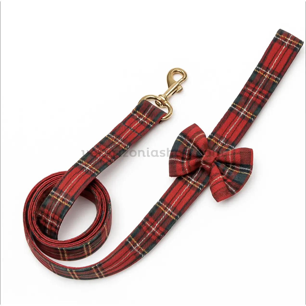 Su diseño escocés rojo la convierte en la correa ideal para la temporada navideña, combinando con looks festivos y sesiones fotográficas familiares.