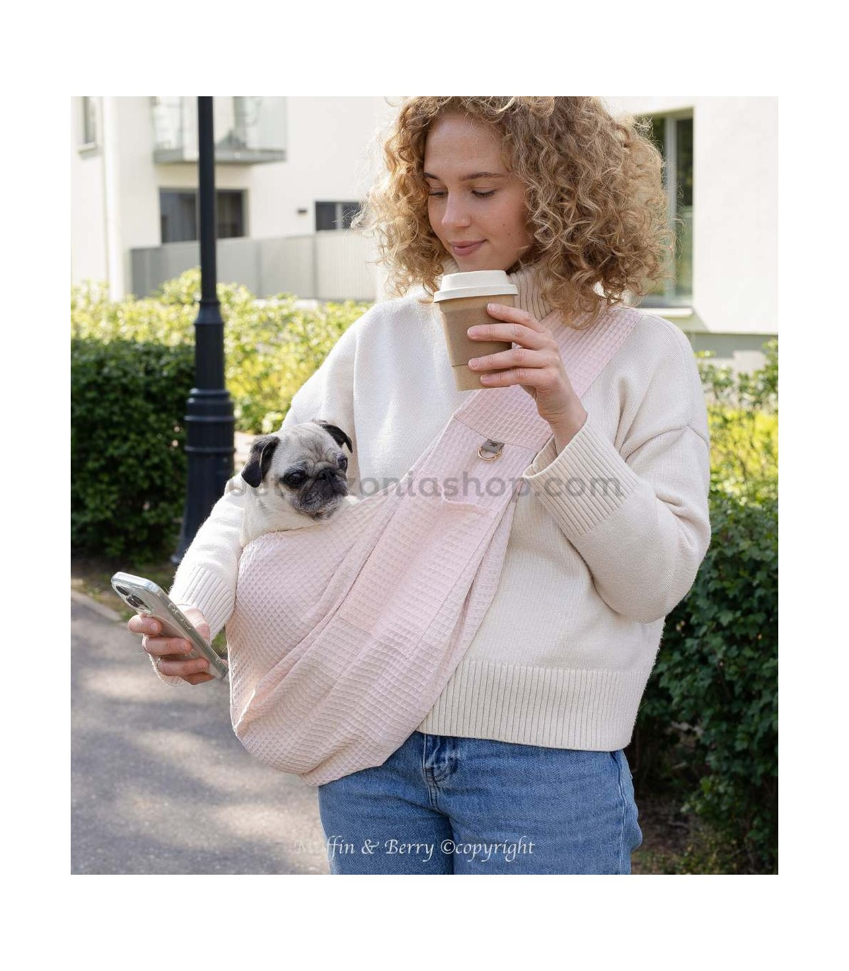 La Sling Carrier Maya de Muffin & Berry está diseñada para tutores que buscan una bandolera funcional, ligera y con un diseño actual, sin renunciar al bienestar del perro.
