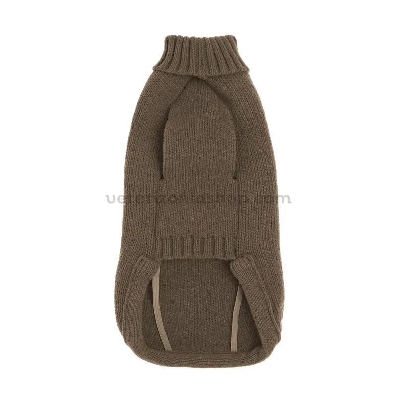 Este modelo destaca por su cuello alto tipo dolcevita, que proporciona abrigo adicional en la zona cervical, una de las partes más sensibles de los perros en invierno. Además, está confeccionado con un tejido acrílico de alta calidad, muy agradable al tacto, que mantiene el calor corporal sin producir picores ni molestias.